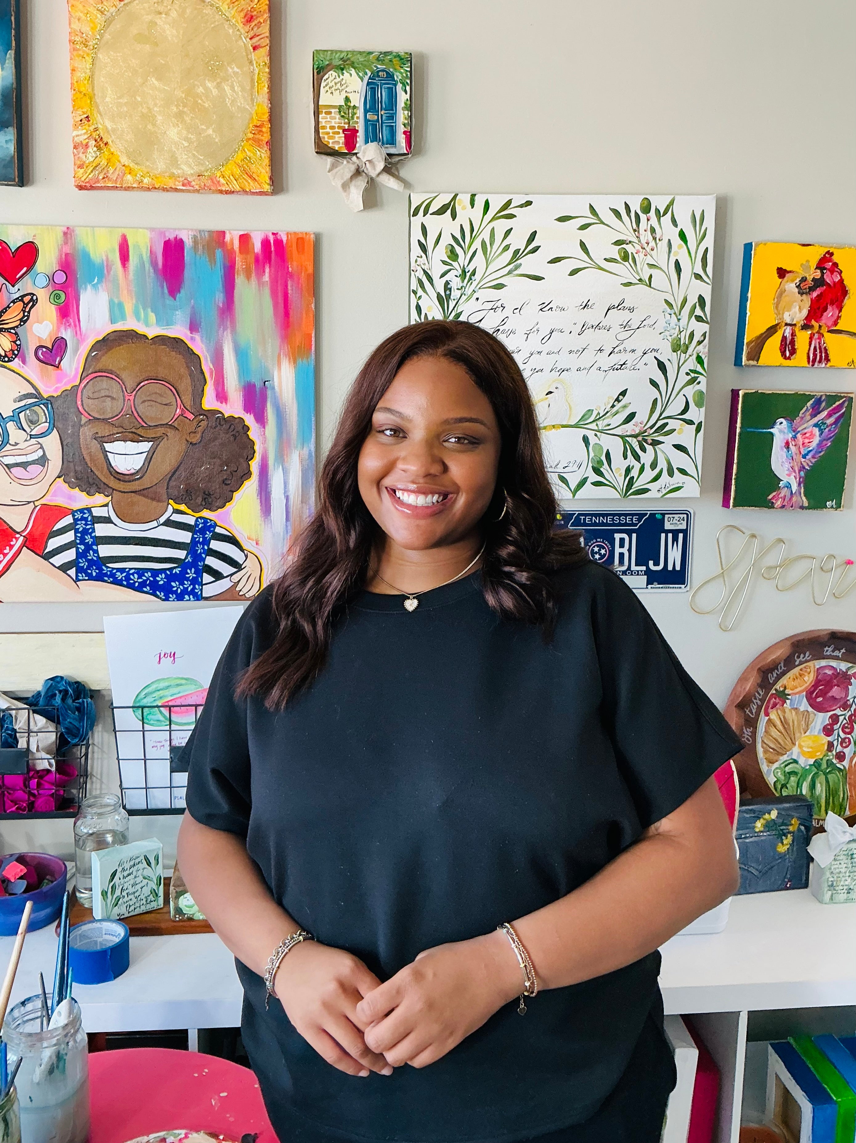 Today, I create bold, vibrant pieces full of life and color—art that reflects faith, joy, and the beauty of being exactly who God created me to be.